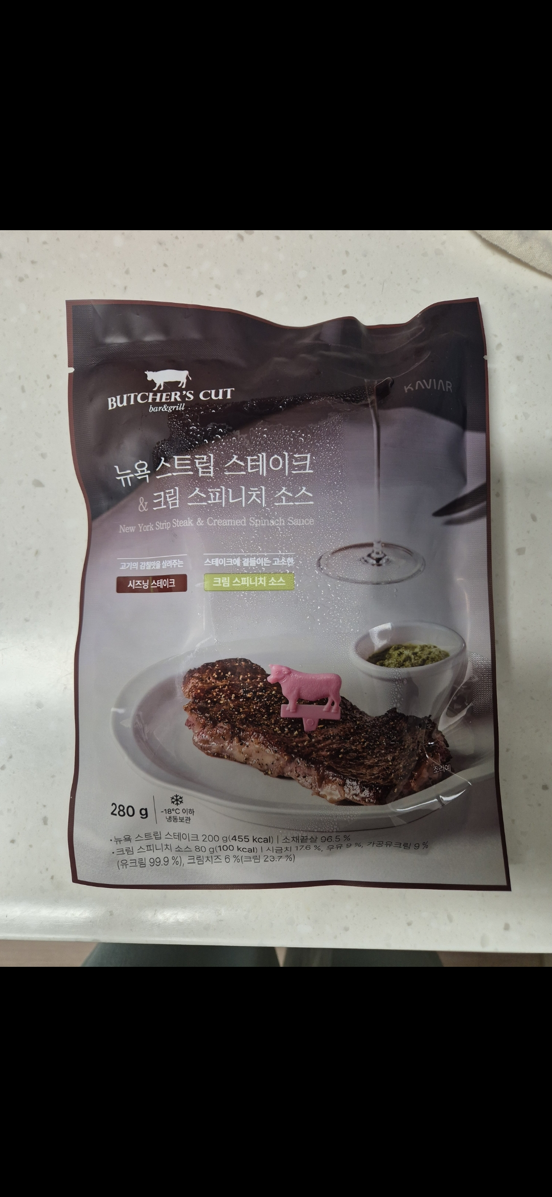고기 잡내는 아에 없고 적당한 간과 시즈닝이 되어있어 그냥 굽기만 하면 레스토랑 퀄리티의 스테이크를 맛볼 수 있네요.