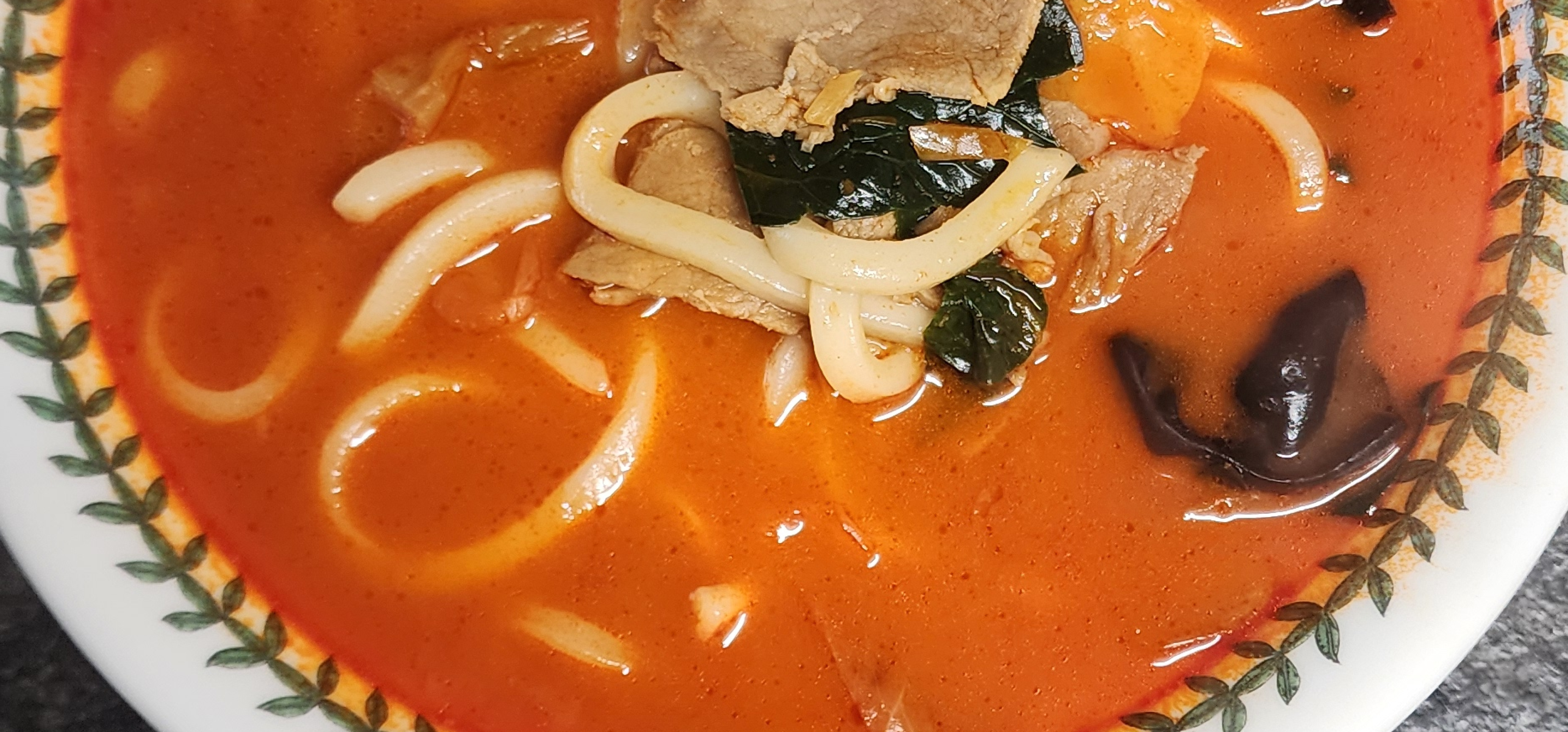 고기짬뽕탕은 국물 자체가 굉장히 진하고 고기짬뽕 특유의 깊은 맛이 느껴져 만족스럽습니다. 기본적으로 면이 포함되어 있지 않아 우동면을 추가해 보았는데, 진한 국물과 잘 어우러져 한 끼 식사로 든든합니다.