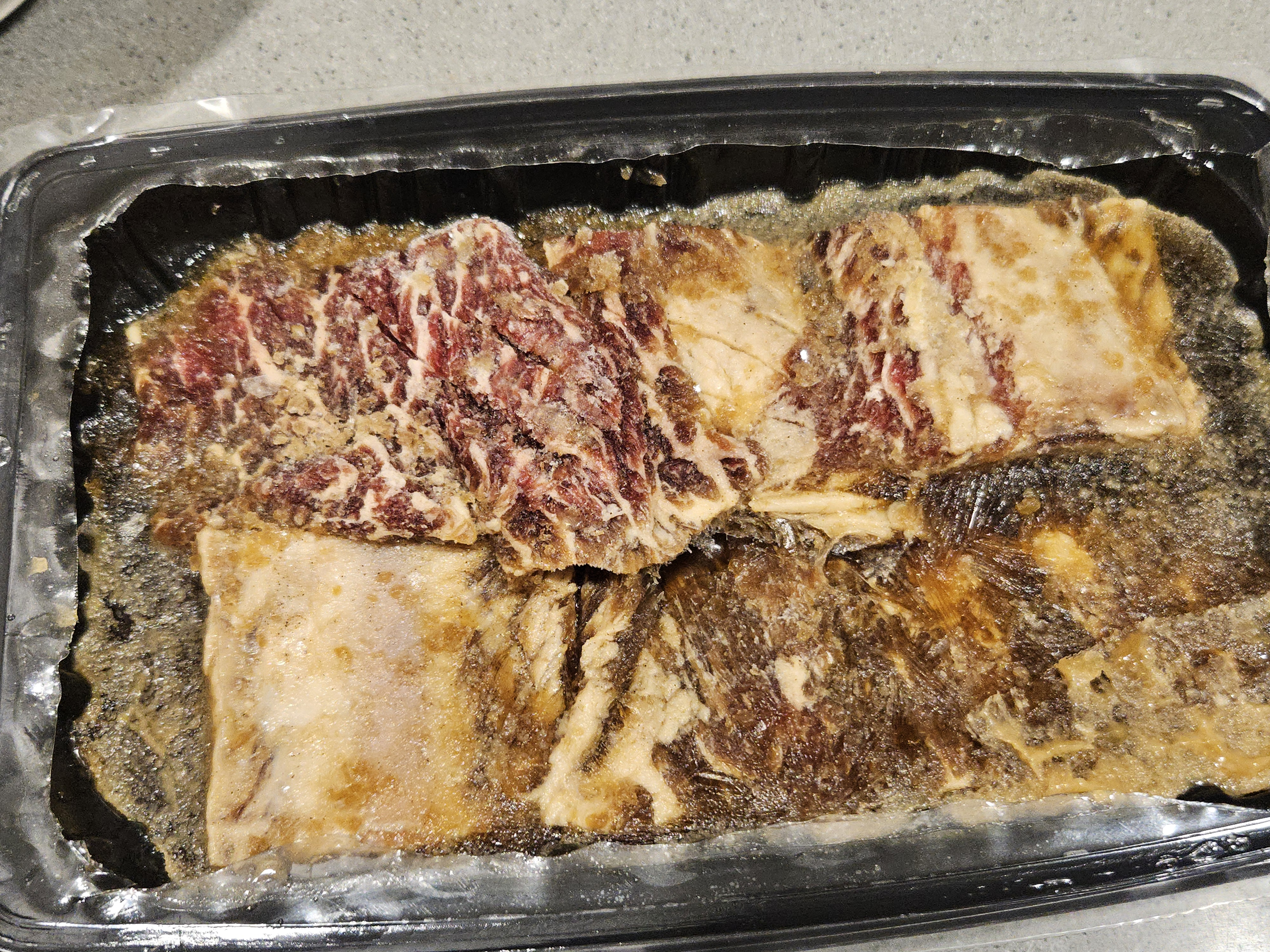 숙성을 해서 그런가 양념도 잘 배어있고 부드럽고~ 식당에서 먹는 양념갈비 맛이에요 집에서 대충 휘리릭 구웠는데 이렇게 맛있을 수가! 하루 좀 안되게 해동했는데 까보니 얼음이 살짝 남아 있더라구요, 하지만 배고파서 그냥 구웠습니다. 어느정도 녹아있어서 그런가 굽는데 전혀 문제되진 않았어요. 맛볼겸 한 팩만 구매했는데 가족들 다 맛있다고 하니 추가 주문해야겠어요~