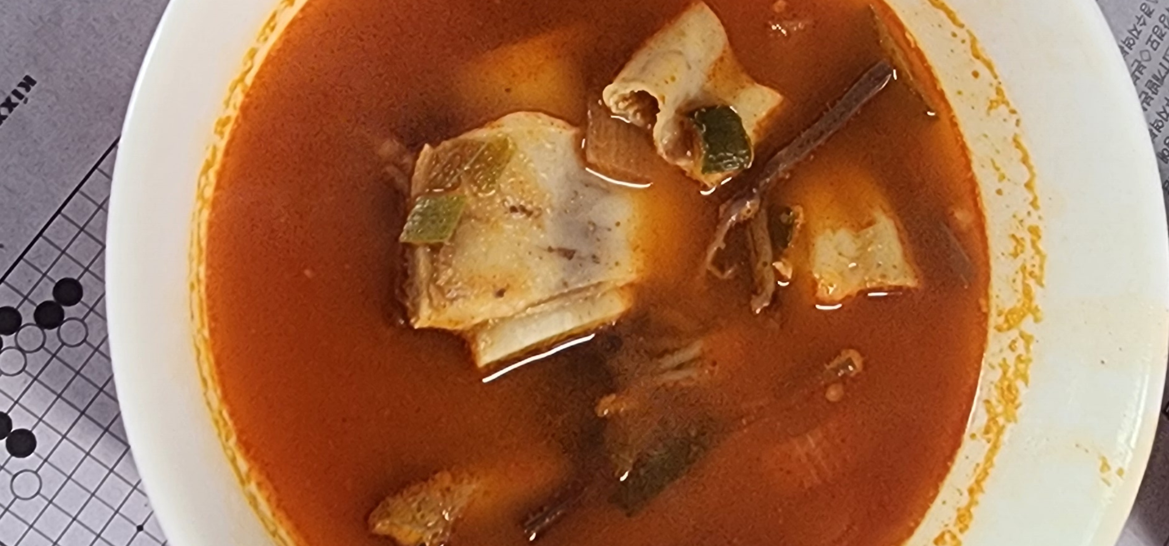 소고기 갈비와 곱창이 들어있어 식감이 아주 좋습니다. 얼큰하면서도 깊은 국물 맛이 일품이라 든든하게 먹기 좋습니다.