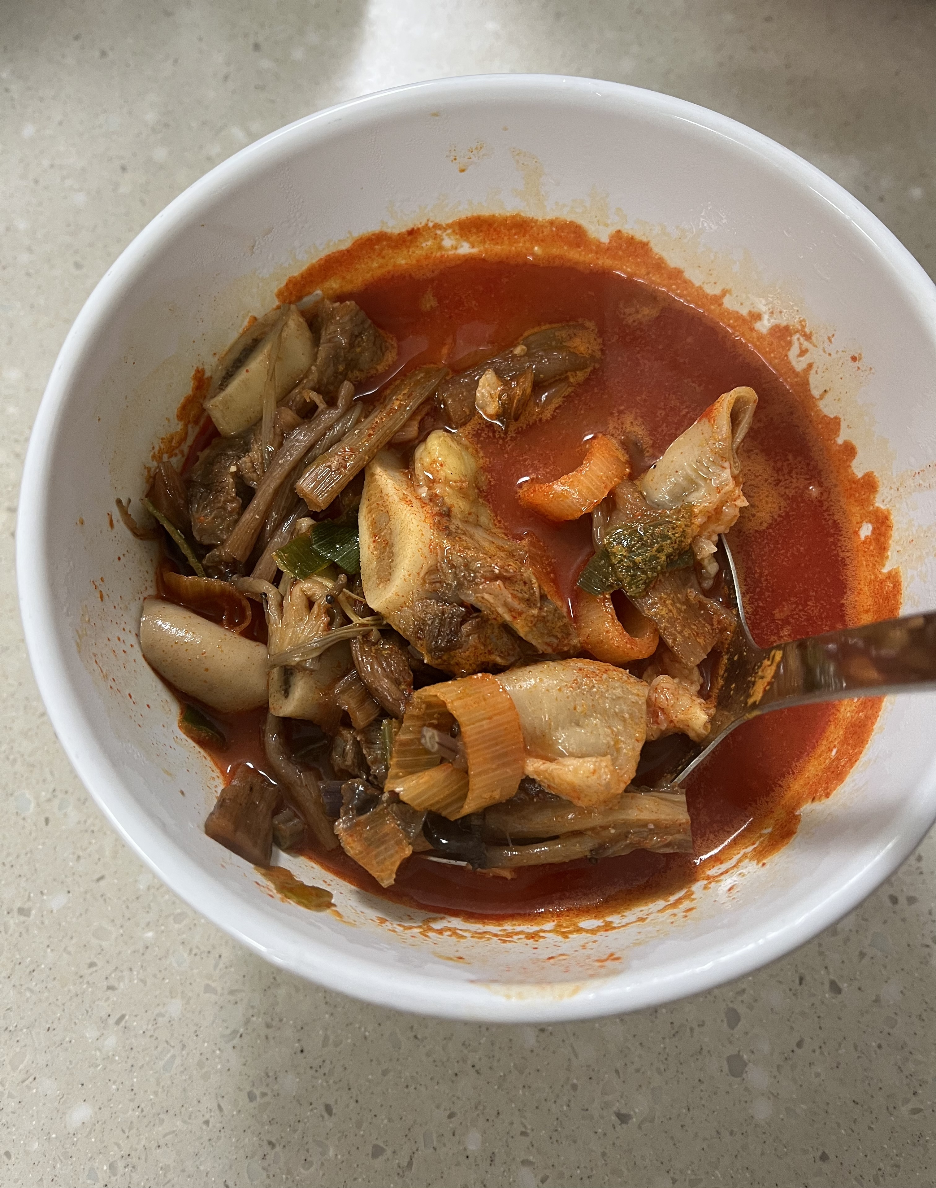 육개장 갈비탕을 처음으로 구매해서 먹게되었는데 전반적으로 건더기가 실하고 갈비도 3개나 들어있어서 1인이 먹기에는 되게 양이 많았어요 그래서 2인분까지도 나눠서 먹기에 딱 좋은 것 같습니다! 국물은 칼칼해서 해장용으로 딱이고 매콤한거 좋아하는 사람이 먹기에도 간이 심심하지 않게 먹을 수 있어서 다음에도 구매 할 것 같아요~